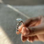 The Azure Radiance ring captures the essence of timeless elegance with its captivating blue gemstone at the center—evoking the depth of a tranquil sea or a twilight sky. Encircled by a delicate array of clear stones along the band, this piece sparkles with refined brilliance. A harmonious blend of color and clarity, it’s a graceful statement of sophistication, perfect for those who appreciate beauty with a bold, serene soul.
